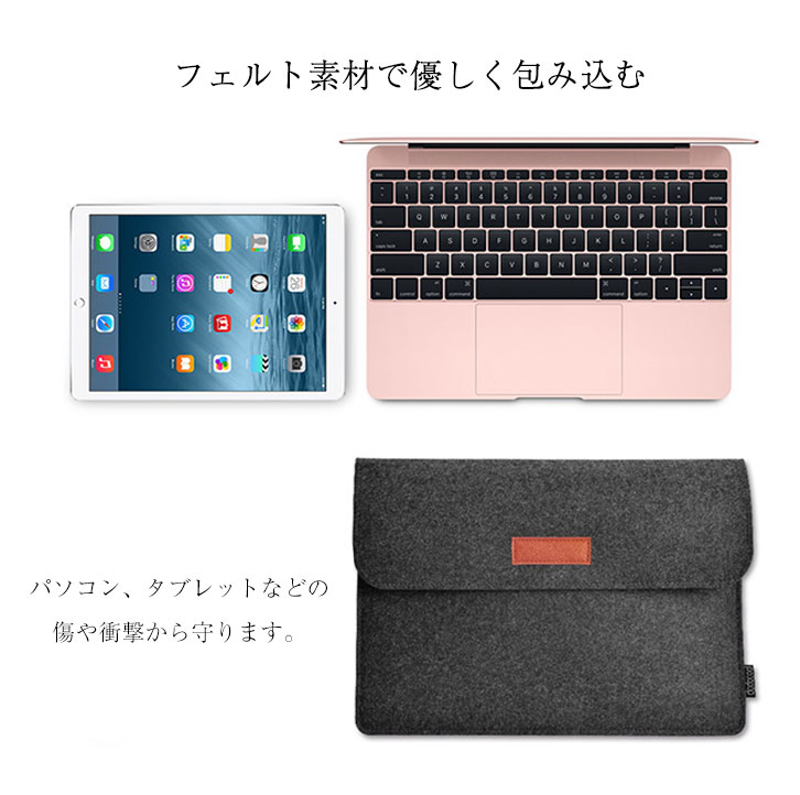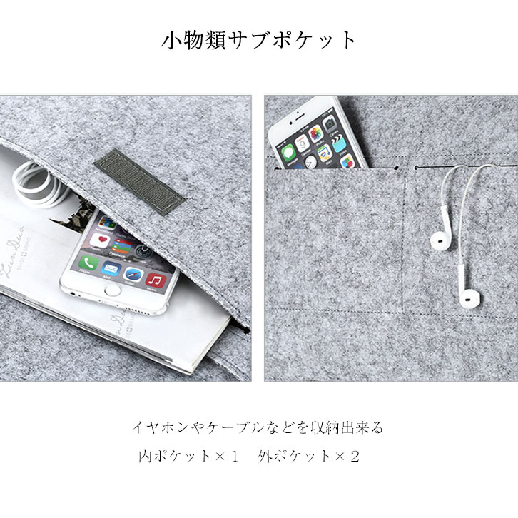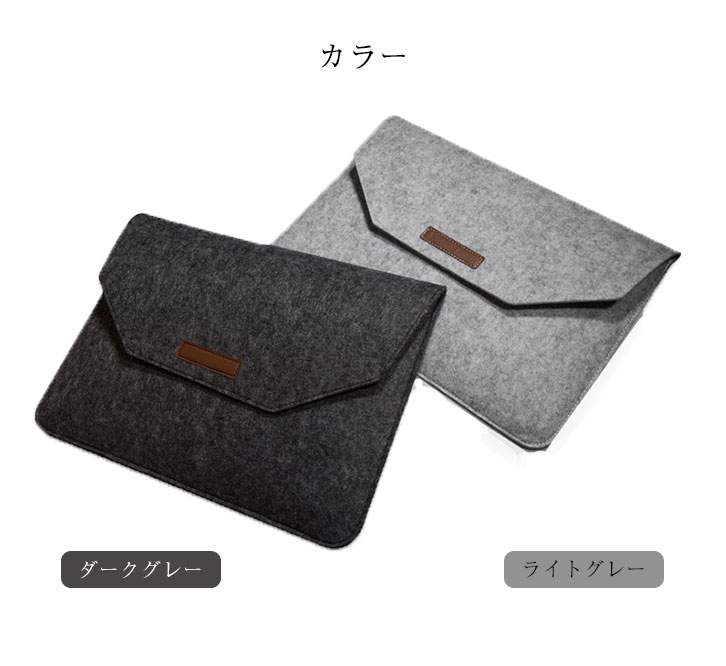 【カラー】ダークグレー/ライトグレー 【サイズ】13インチ 手触り抜群! 柔らかくて環境にやさしいフェルト素材の ラップトップケースになります♪ 背面収納ポケットも2つついているので 充電ケーブルや携帯電話 名刺やUSBメモリなども入れることができ 収納機能も◎ デザインもシンプルなので 学生の方やビジネスマン 老若男女問わずにお使い頂けます♪