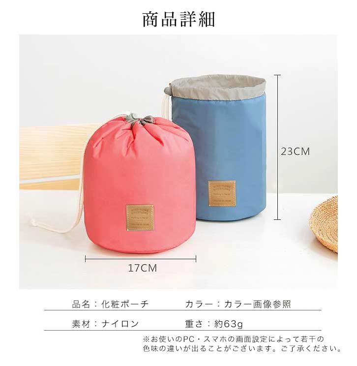 コスメポーチ 円筒形 収納バッグ 防水 メイクボックス トラベルポーチ かわいい 化粧ポーチ バッグ 大容量 メイクアップ 多用途 大容量 筒形メイクポーチ 旅行 便利 巾着 トラベル 内ポケット付き