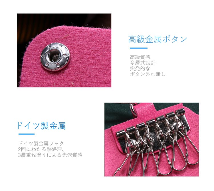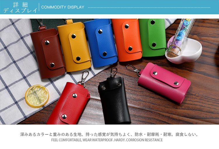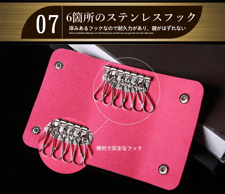牛革を使用した三つ折りキーケース。6連キーフックで収納もバッチリ!