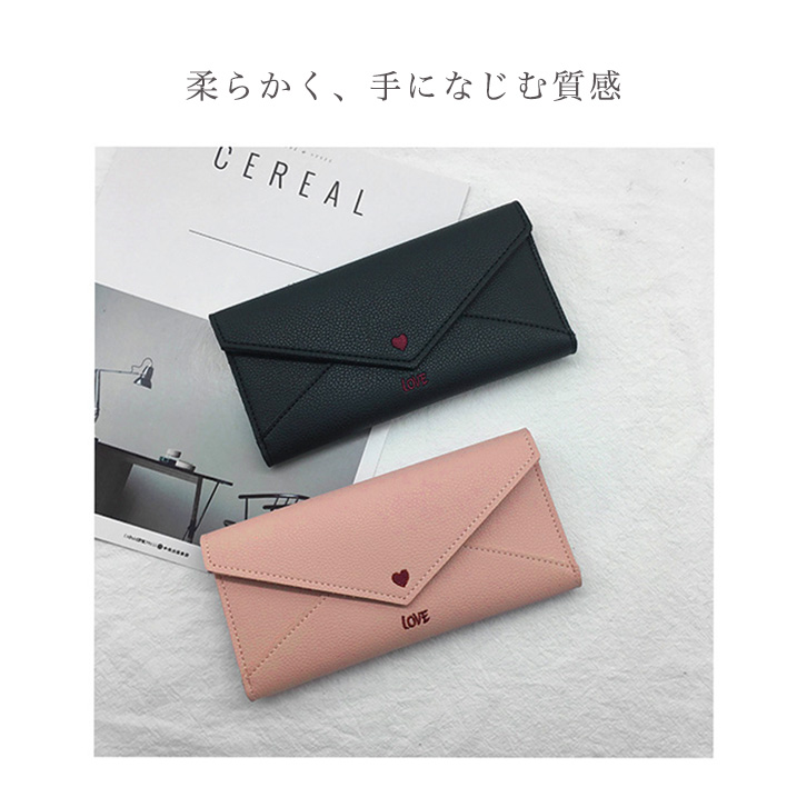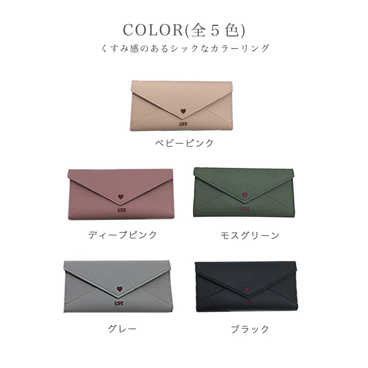 長財布 レディース財布 レター型長財布 ロングウォレット 財布 レディース かわいい ラブレター型 レターデザイン おしゃれ ラブレター風 カラー豊富 ブラック モスグリーン ベビーピンク ディープピンク グレー