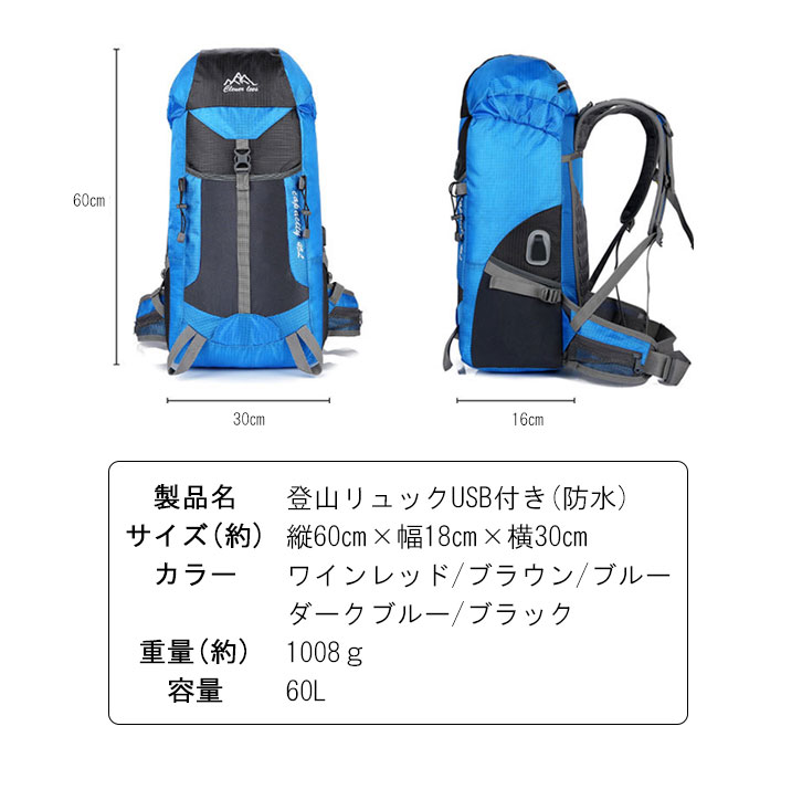 登山バッグ USBポート付き リュック バックパック リュックサック メンズ レディース サック 登山 アウトドア 防災 トレッキング デイパック ハイキング バッグ おしゃれ 男女兼用 カラー豊富 カラバリ