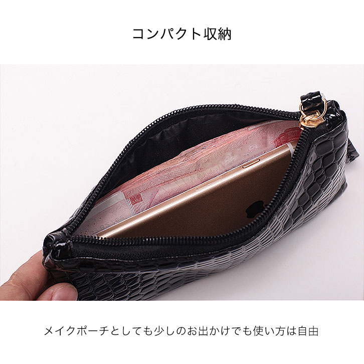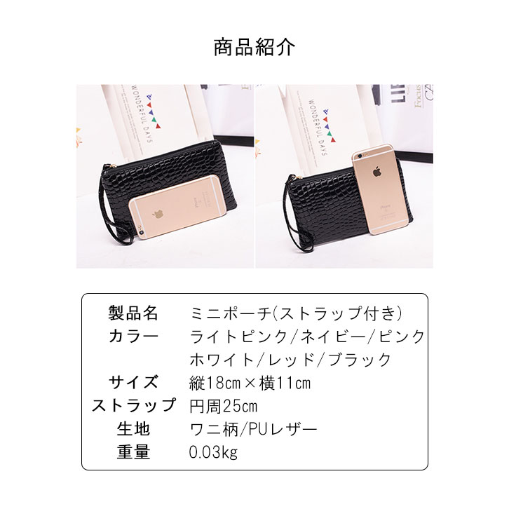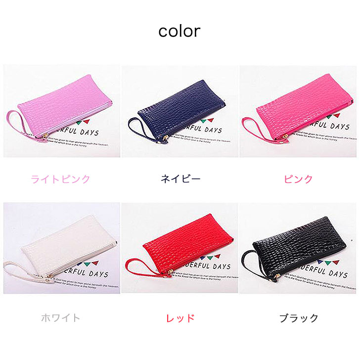 【カラー】ピンク/ブラック/ブルー/ホワイト/ライトピンク/レッド クロコダイル柄の使い勝手の良いサイズの ミニポーチになります♪♪ 小銭入れとしてはもちろん、化粧ポーチやバッグの整理 シガーケース等としてもお使い頂けます。 スマホや小銭などを入れてちょっとしたお出かけにも 最適のアイテムです☆