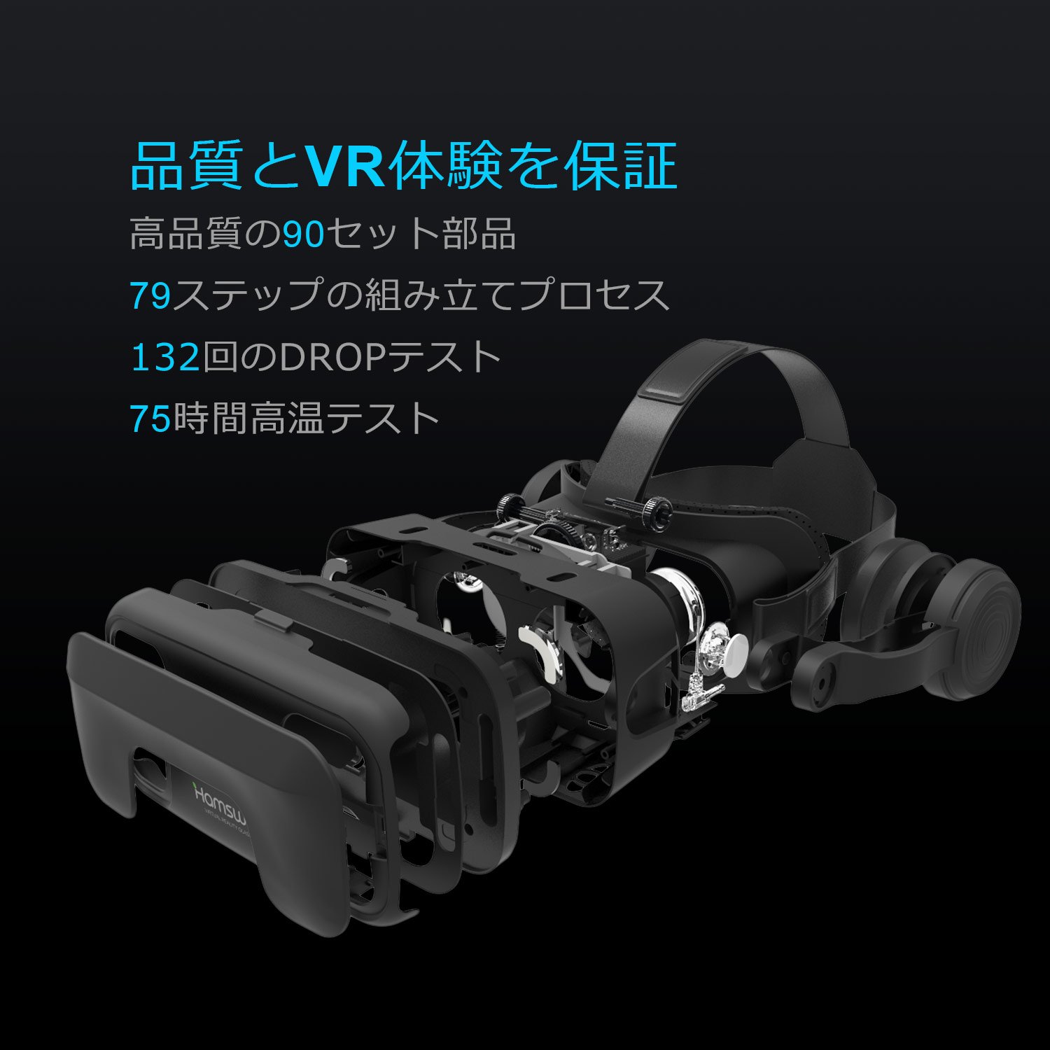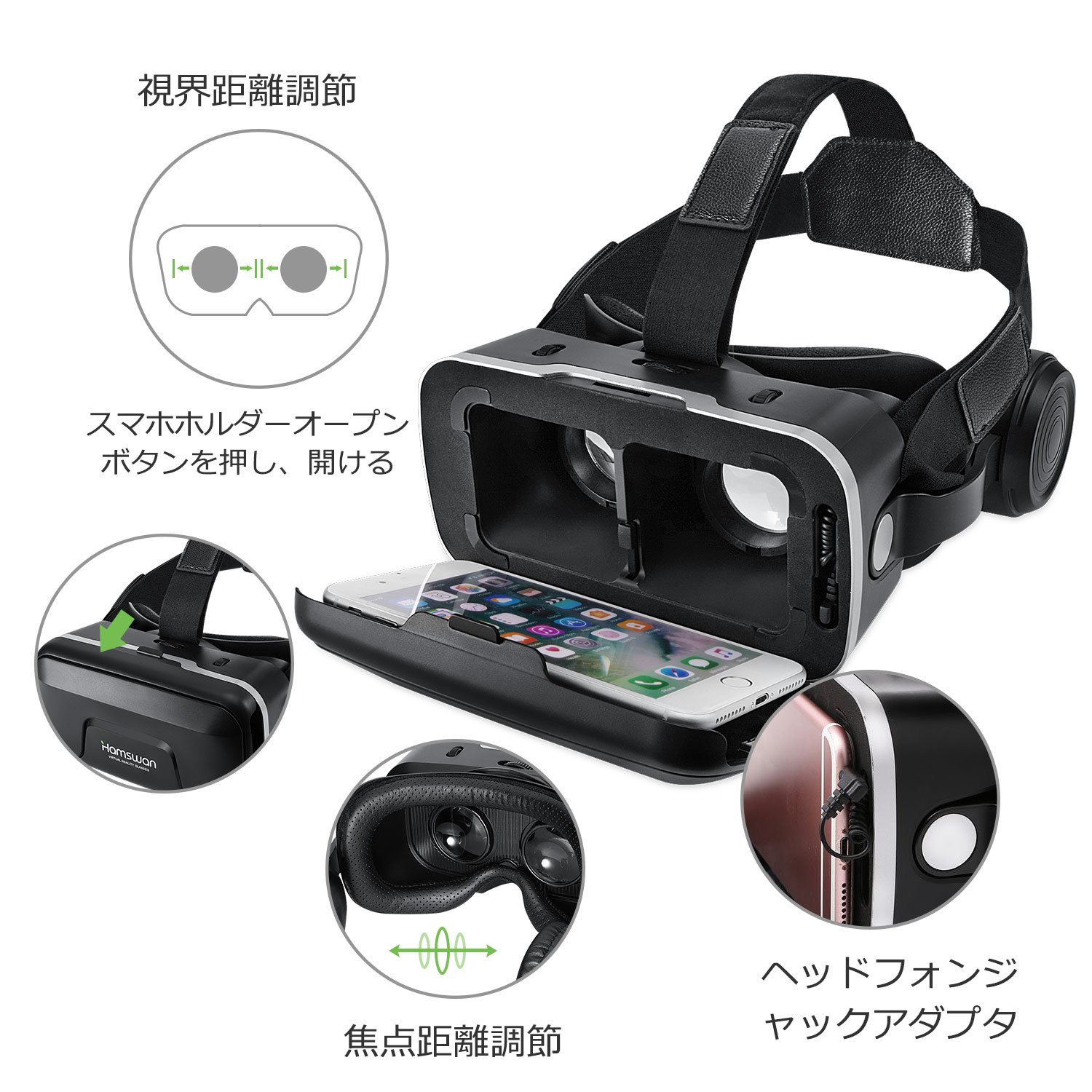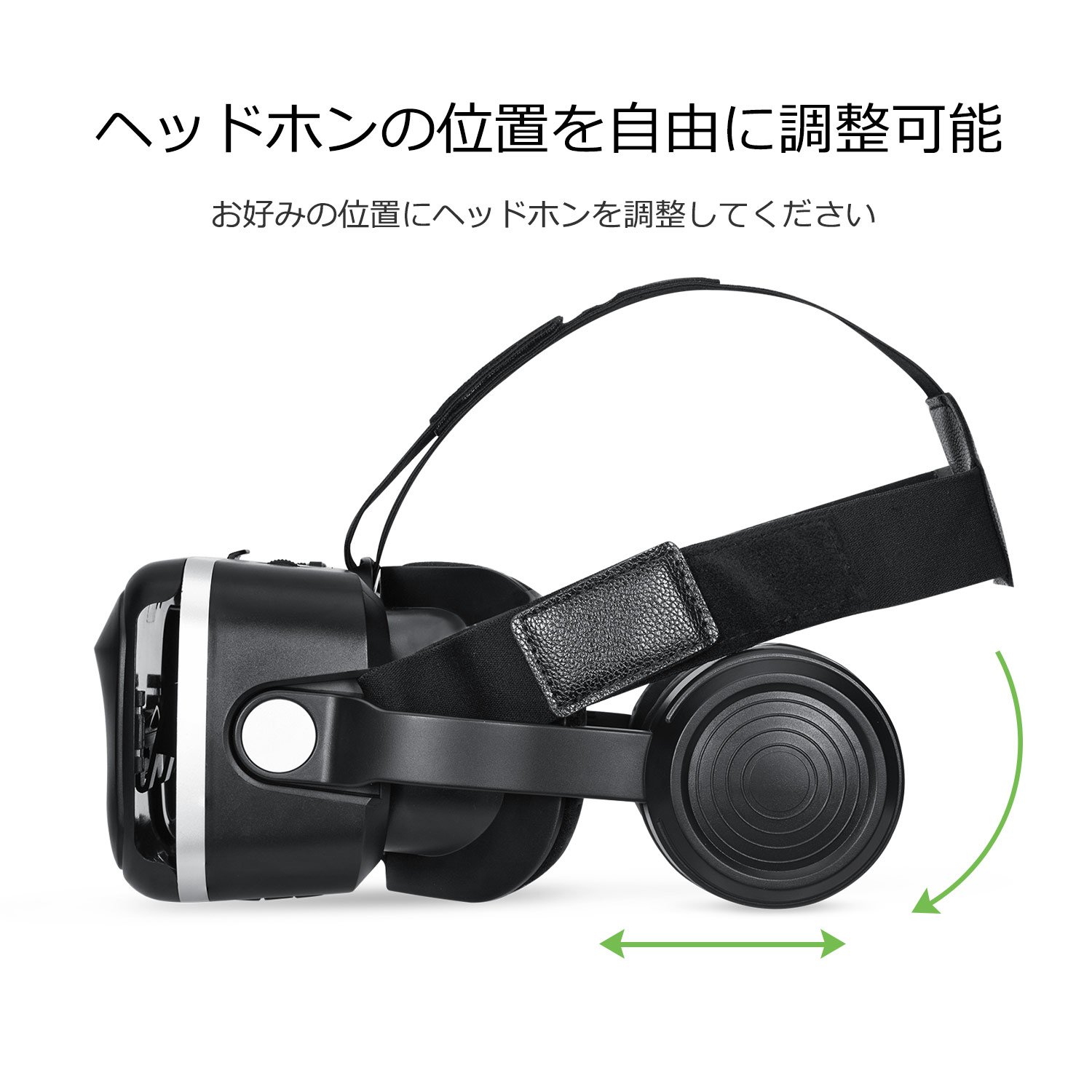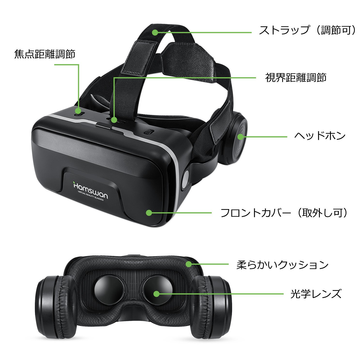 VRゴーグル 3DVRゴーグル 3Dメガネ ヘッドホン付き スマホ用 音量調整3D VRゴーグル ヘッドホン実装 VRメガネ 疑似体験3D眼鏡 3D動画/ゲーム用VR BOX HAMSWAN G04EA視界レンズ距離を調整可能4.0~6.0インチスマホiOS/ Androidに対応3Dグラス(ブラック)