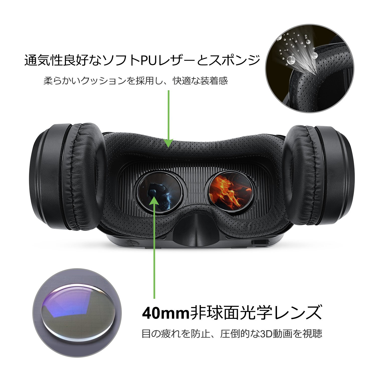 【全く新しいデザイン】本製品はヘッドホン一体型の3D VRゴーグルです。ヘッドホン一体型なのでご自分でイヤホンやヘッドホンを用意する必要がなく、コンテンツに更に没頭できます。ヘッドホンは弾力性のある柔らかなイヤーパッドを使用し、装着感抜群。父の日ギフトに最適!