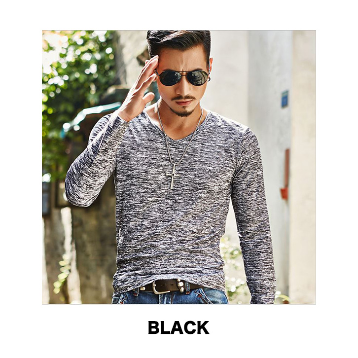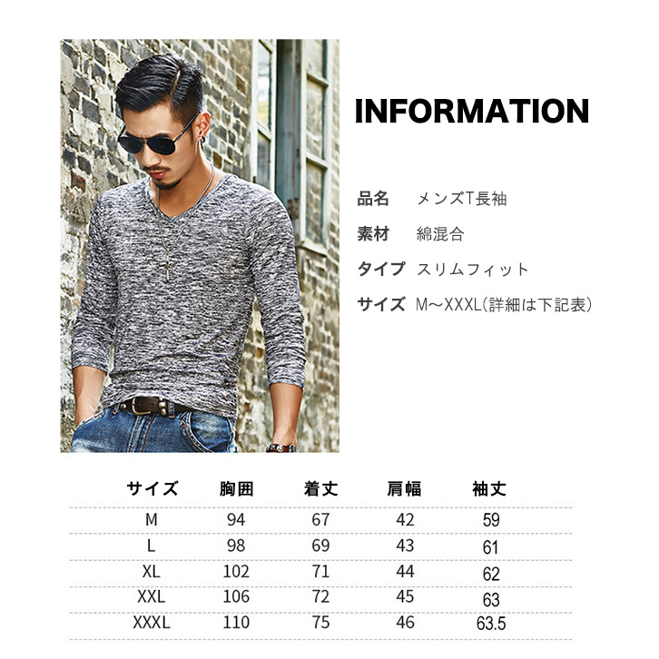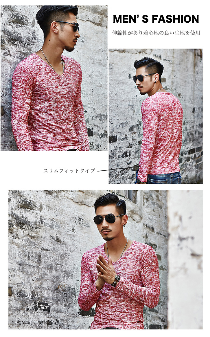 メンズ ロンT ネック ロングTシャツ 長袖 Tシャツ メンズカジュアル デイリーシリーズ 無地 Vネック カットソー お洒落 シンプル 男性