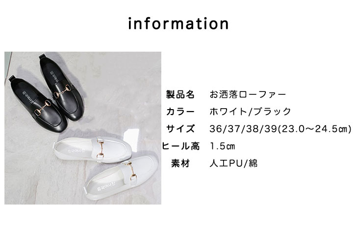 【カラー】ブラック/ホワイト 【サイズ】36/37/38/39(23.0~24.5cm) アイテムに世代を問わず履けるレディースローファーが登場★ シンプルなコーデに合わせてかっちりと決めるのはもちろん、 インパクトのあるアイテムと合わせてオシャレを楽しむのもおススメです★ 合わせるコーデや世代を選ばないローファーは1足あると重宝しますよ♪