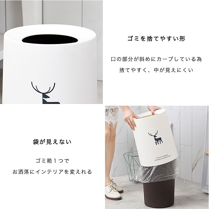 【カラー】ホワイト/ブラック/グレー 【サイズ】12L ゴミ袋を隠して生活感を抑えるという画期的なスタイルのゴミ箱♪ ゴミ箱がインテリアにチェンジ♪