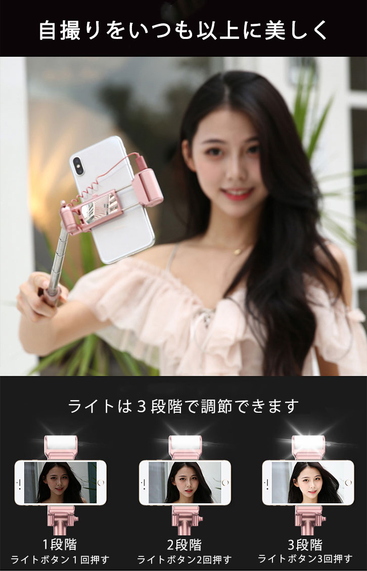 【カラー】ローズゴールド/ピンク/ホワイト/ブラック 【ストレッチ長】185-870mm 【主要材料ステンレス】鋼/ PC材料 【計器重量】178G 【照明時間約】2時間 Bluetoothセルフスティック従来のデザインを打ち破り、夜間撮影機能を実現。 反射型参照ミラーを追加すると、使用後にカメラがより鮮明になります。 軽量で安定した構造です。 【問い合わせ商品コード】 aqua-i-l-017
