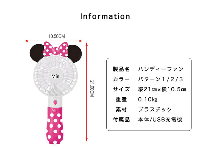 【カラー】Ⅰ水玉ピンク/Ⅱ水玉レッド/Ⅲブラックレッド 【サイズ】約W10.5×H21cm かわいい手持ち扇風機が登場! 充電可能だから、屋内でも屋外でも大活躍間違いなし!