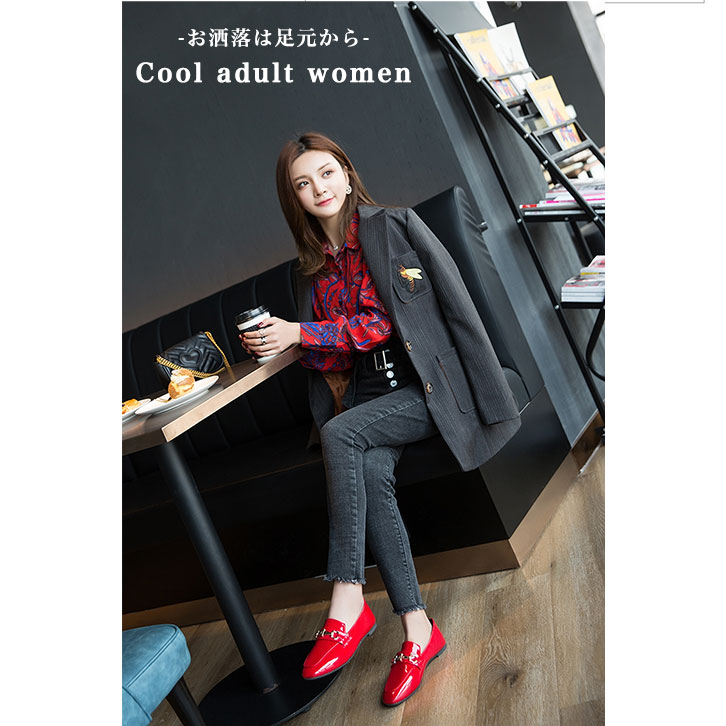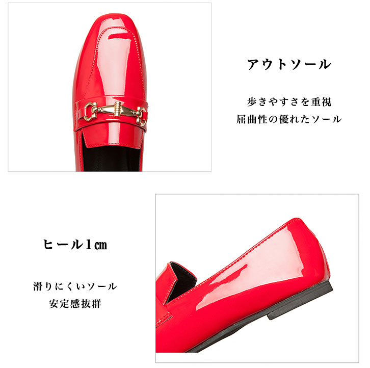 ローファー レディース シューズ レディースローファー マニッシュ エナメル 太ヒール 歩きやすい 疲れにくい おじ靴 ぺたんこ 人気 定番