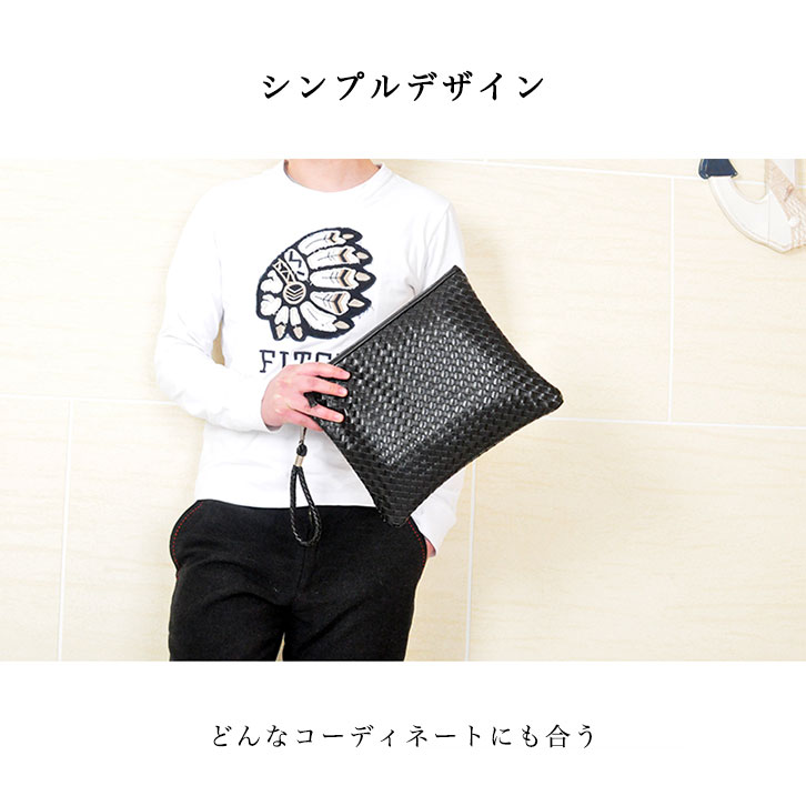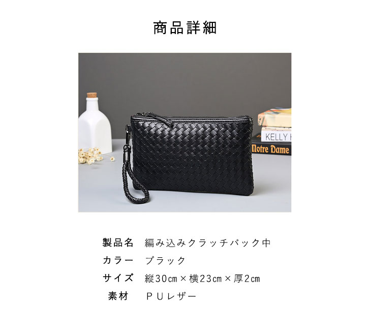 クラッチバッグ PUレザー 高級感 オシャレ メンズクラッチ セカンドバッグ クラッチ PU革 パーティーバッグ 黒 ブラック ビジネス 編み込み おしゃれ かっこいい Mサイズ 中型 合成皮革 オフィスカジュアル