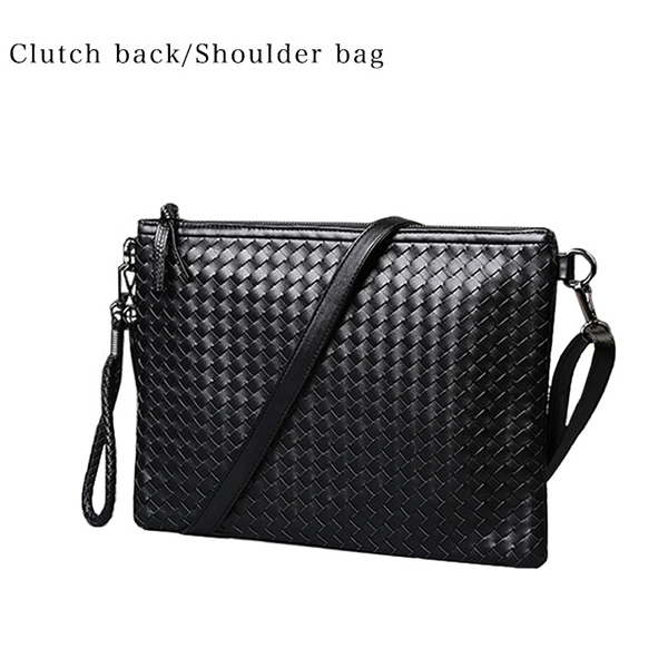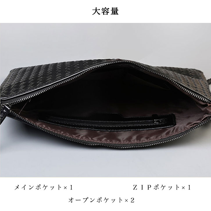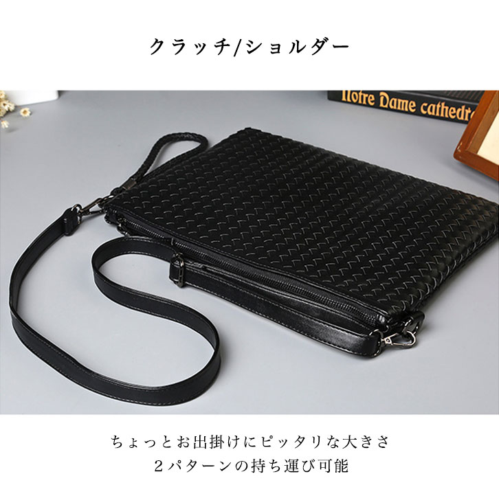 クラッチバッグ ショルダーバッグ 肩掛け 2way PUレザー 高級感 オシャレ メンズ セカンドバッグ クラッチ ショルダー PU革 パーティーバッグ 黒 ブラック ビジネス 編み込み おしゃれ かっこいい Mサイズ 中型 合成皮革