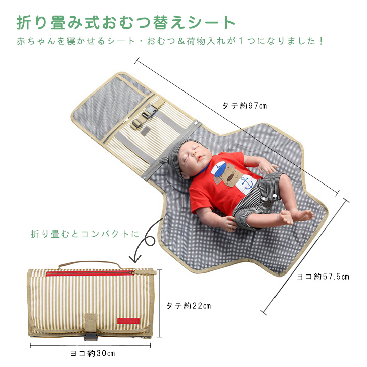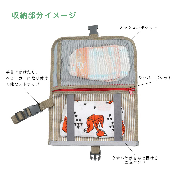 おむつ替えシート おむつポーチ ポケット付き 防水 軽量 コンパクト ベビー用品 多機能 コンパクトに収納 お出かけ用品 出産祝い 携帯便利 ファスナーポーチ付き ストラップ付き 防水 小物収納可能