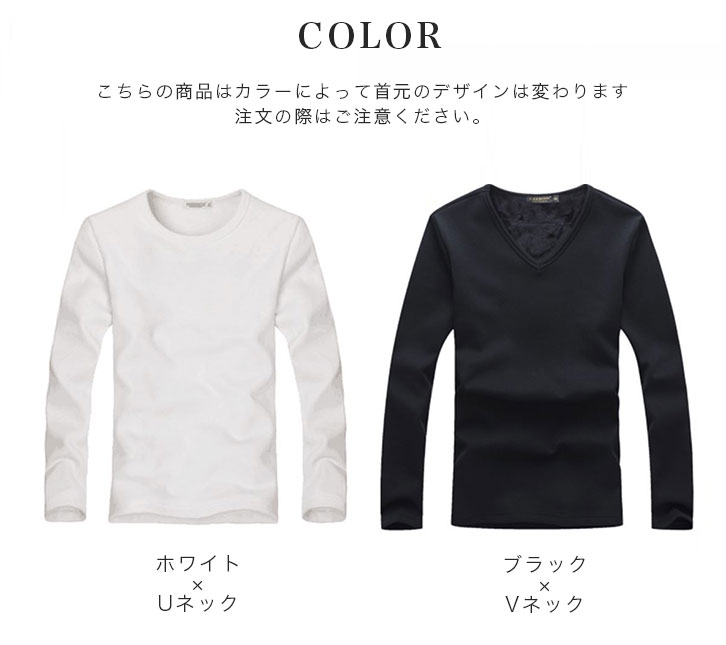 【カラー】ブラック/ホワイト 【タイプ】Vネック/Uネック Mサイズ 寒い冬にピッタリなメンズインナーになります。 外作業に通勤、通学に大活躍!! 防寒対策もバッチリです♪ 冬のメインアイテムとして重宝する事間違いなしで 使い勝手の良い無地♪♪ 何枚持っていてもヘビロテで活躍してくれる1着です。