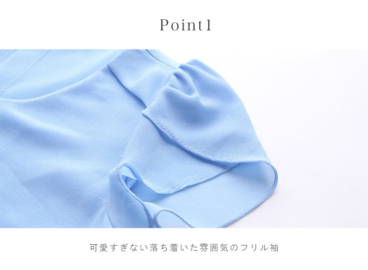 ブラウス シフォン シャツ ラッフルスリーブ フリル袖 無地 レディース 春夏 シンプル 合わせやすい 可愛い