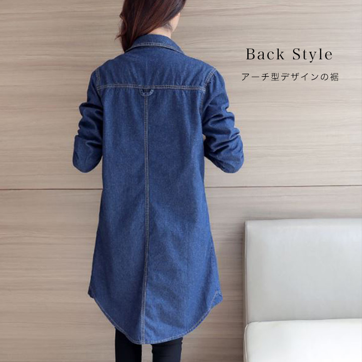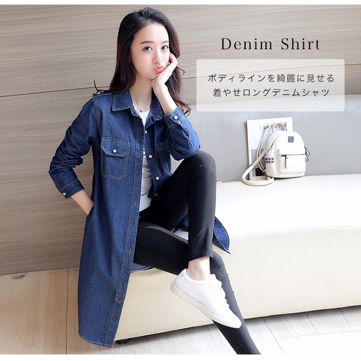 ロングデニムシャツ レディース デニムシャツ トップス デニム シャツ 長袖 着やせジャケット 長袖 春アウター デニムワンピ 着やせ効果 おしゃれ ロングデニムシャツ ジャケット 体系カバー 羽織