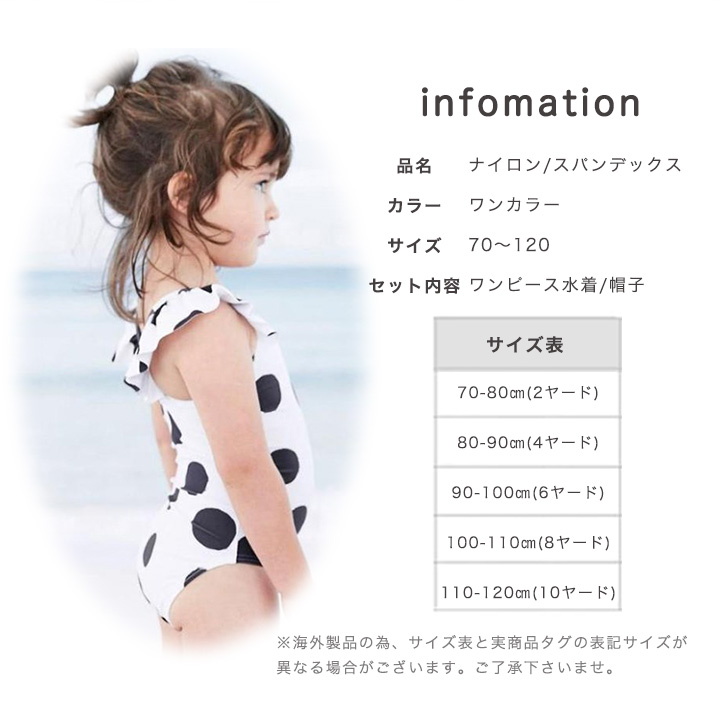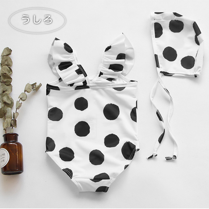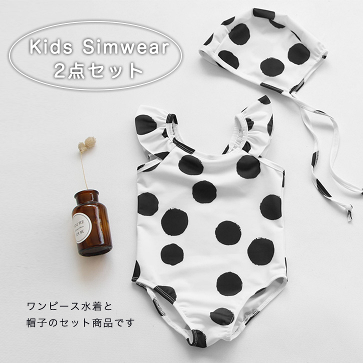 水着 ベビー キッズ スイムウェア ワンピース 水玉 女の子 ガールズ キャップ付き キッズ水着 海水浴 プール 水遊び 温泉 かわいい おしゃれ 水着と帽子の2点セット 可愛い 夏 オシャレ