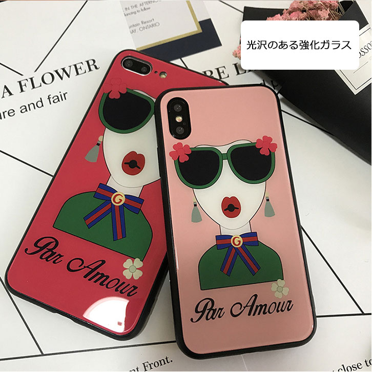 iPhoneケース アイフォンケース iPhoneカバー サングラスガール おしゃれ 人気 背面強化ガラス 可愛い 大人可愛い レディース カラフル おしゃれ女子 グラサンガール TPU素材 強度抜群