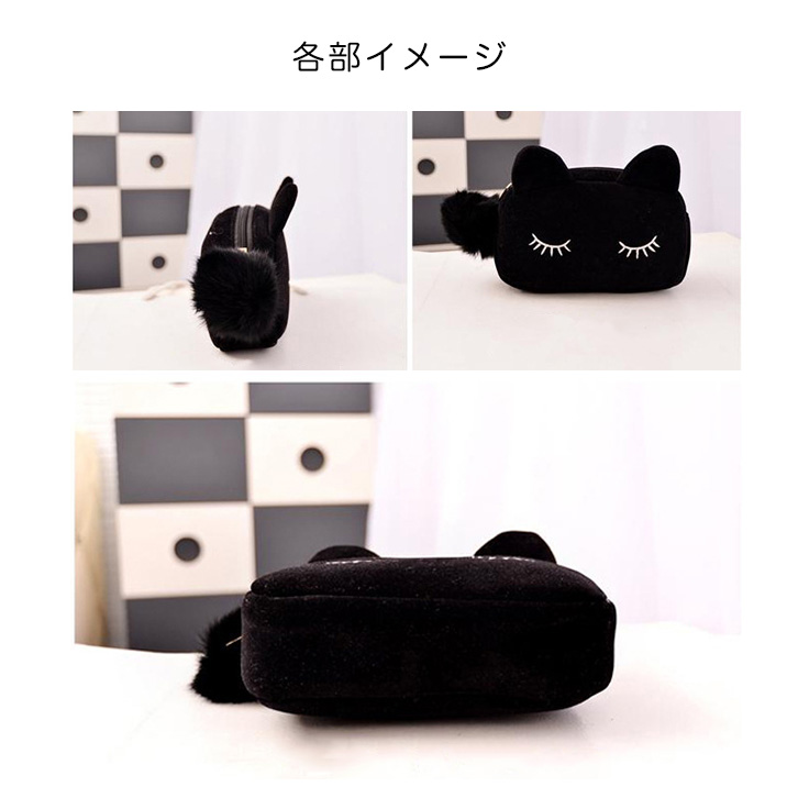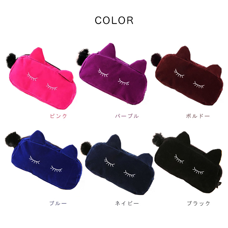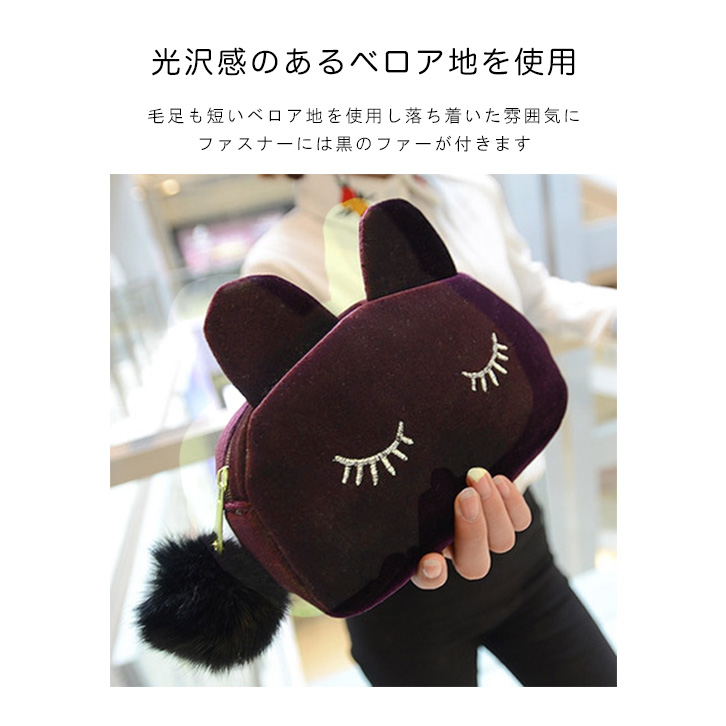 ポーチ ハンドポーチ メイクポーチ 猫ポーチ キャットデザイン 猫ちゃん ねこちゃん ネコちゃん型 かわいい おしゃれ ベロア生地 ファーファスナー 可愛い オシャレ カラー豊富 カラーバリエーション