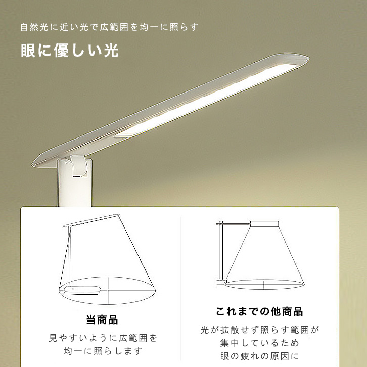 広い範囲を均一に照らし眼に優しい