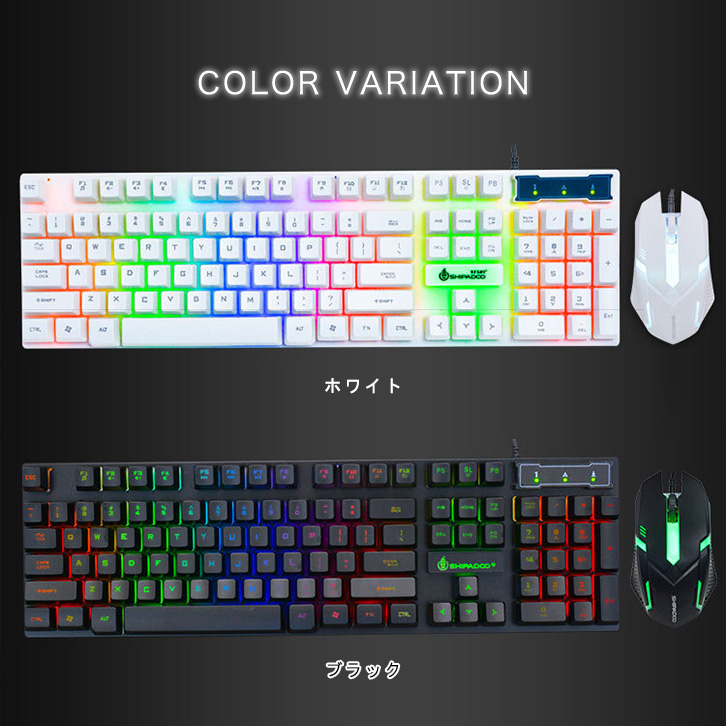 キーボード&マウスセット 2点セット ゲーミングキーボード LEDライト バックライト 立体浮式フレーム 有線タイプ 光る マウス キーボード