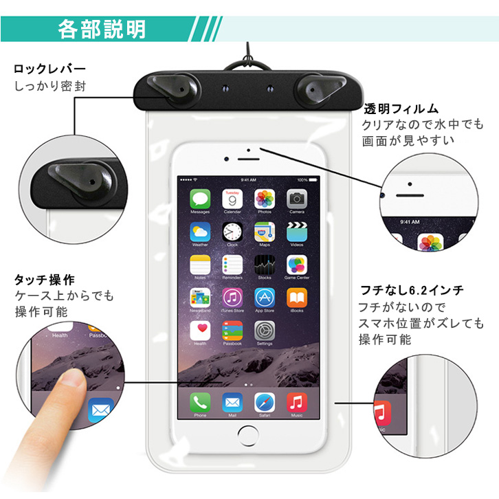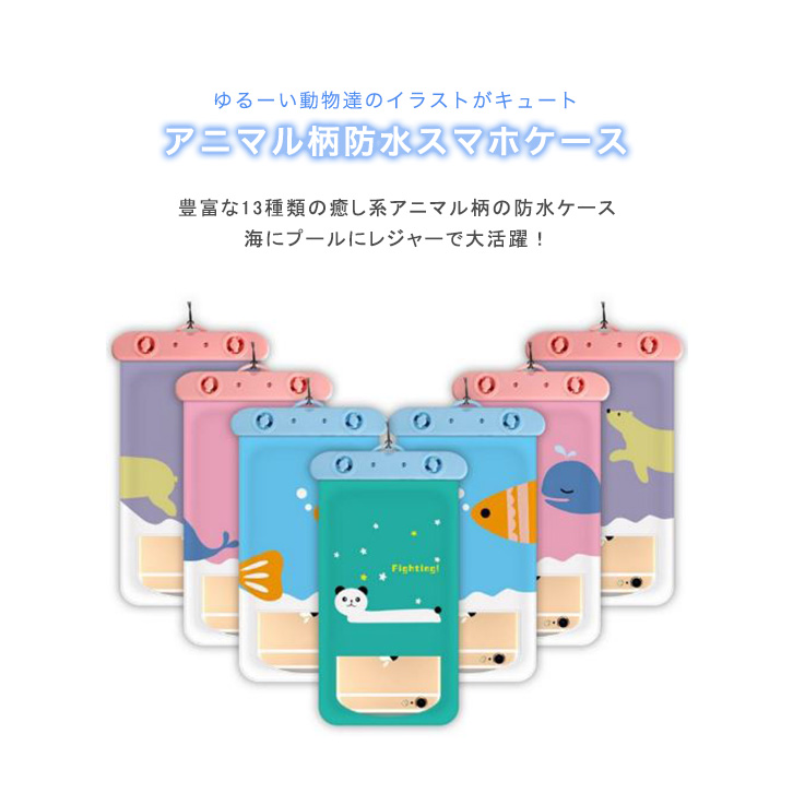 防水スマホカバー アニマル柄 防水ケース 海 プール レジャー 12絵柄展開 iPhone android 6インチまで対応 ネックストラップ付