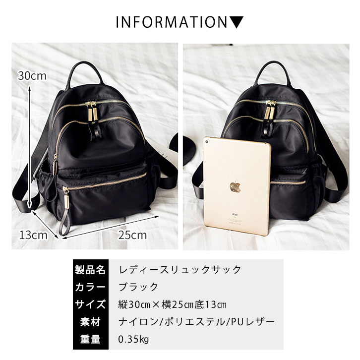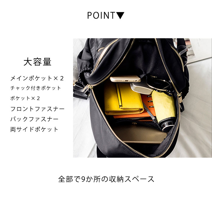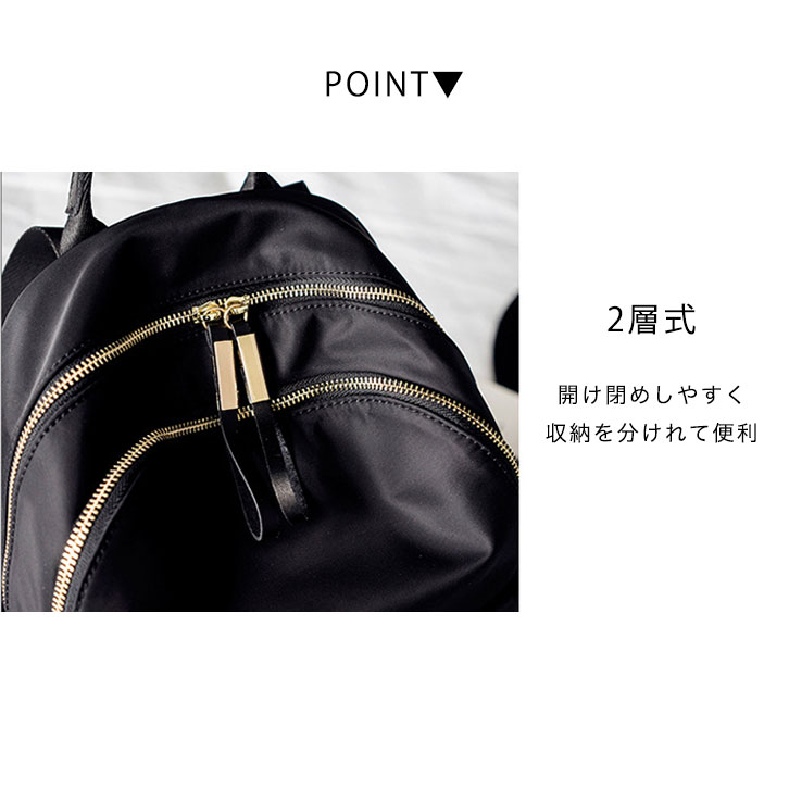 リュック マザーズバック レディースリュック バックパック 大容量 収納スペース多数 2層式 ファスナー 防水加工 ナイロン 撥水コーティング ブラック シンプル 大容量収納 コーデに合わせやすい おしゃれ かわいい
