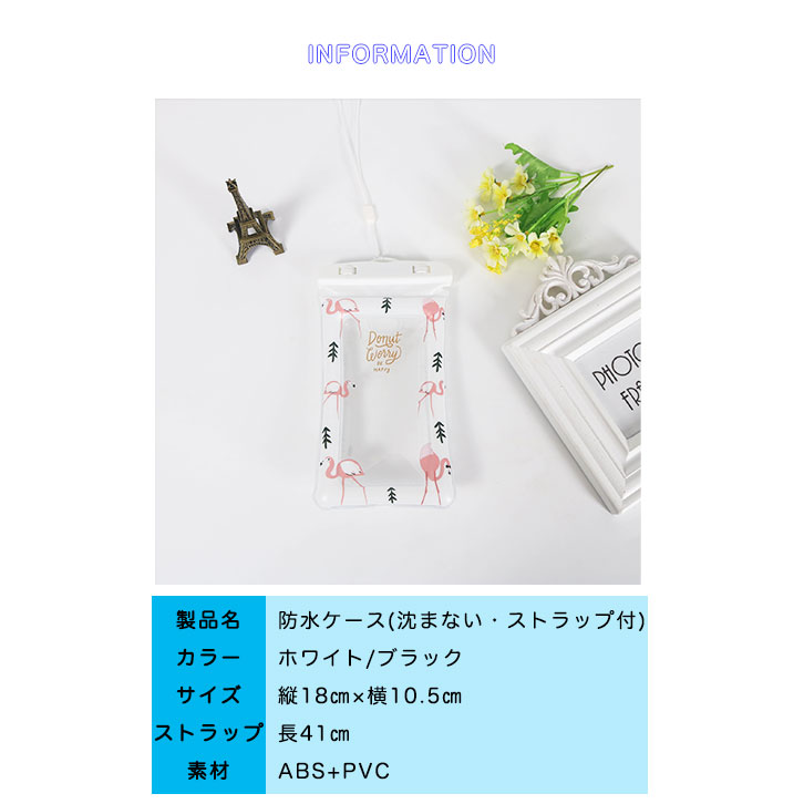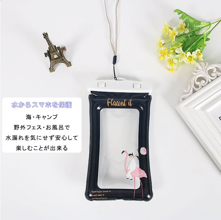 防水ケース スマートフォン iphone 小物ケース フラミンゴ ネックストラップ スマホ 海 プール 夏