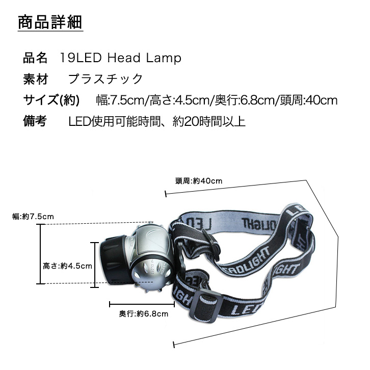 【サイズ】約W7.5×H4.5×D6.8cm 【素材】プラスチック 【カラー】シルバー 釣り アウトドア 登山 サイクリング 自転車 防災 災害 読書 夜の警備 など幅広くお使いいただける ヘッドライト です。