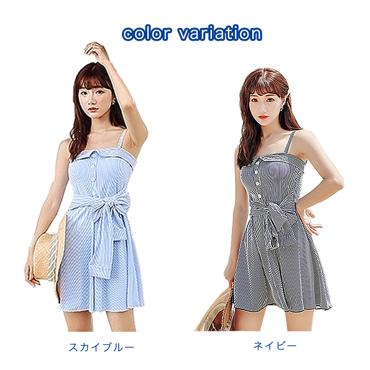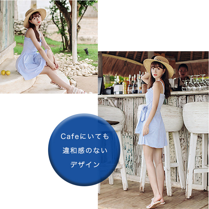 【カラー】スカイブルー/ネイビー 【サイズ】M/L/XL 【素材】ナイロン82%/ポリウレタン18% お腹周りのカバーに。一体型のワンピースは、お腹周りもしっかり隠して激しく動いてもめくれる心配がないのが嬉しい!