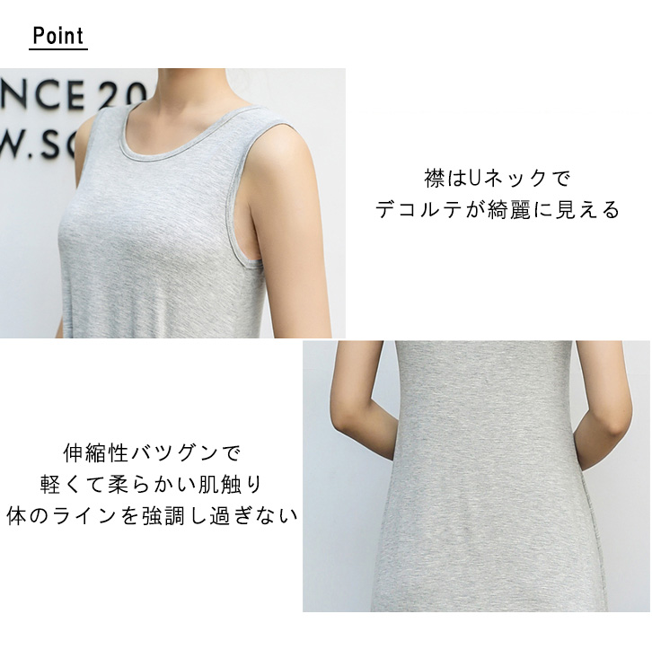 【カラー】ライトグレー/ネイビー/ブラック 【サイズ】Mサイズ 肌触り抜群!着心地も抜群の タンクトップワンピースになります♪♪ 1枚で大人のカジュアルスタイルが決まります☆ さらっと着心地の良い素材でデイリーにぴったり! 一枚で着ても重ね着でも◎