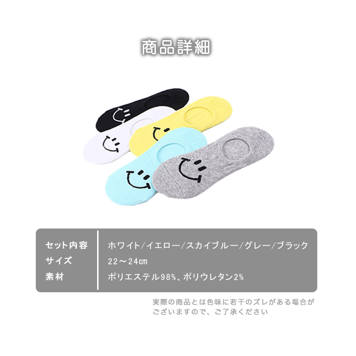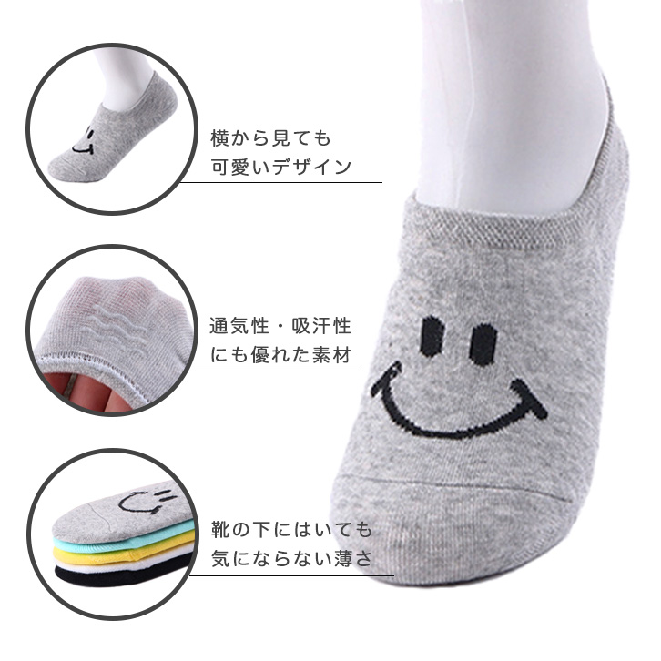 靴下 くつ下 くつした ソックス レディース Socks 女性 婦人 浅め 浅履き ビジネス カジュアル スマイル スマイリー にこちゃん
