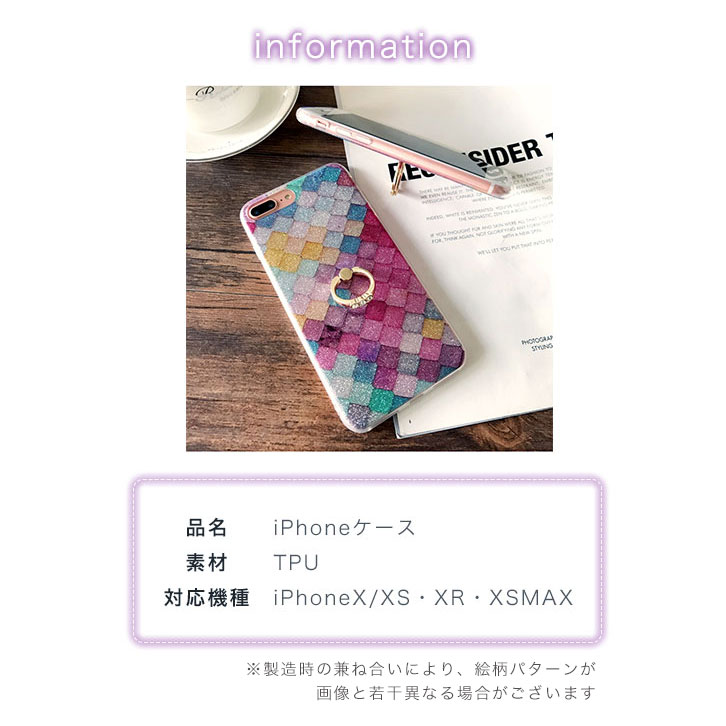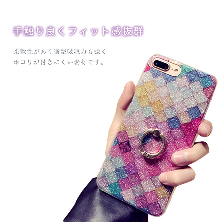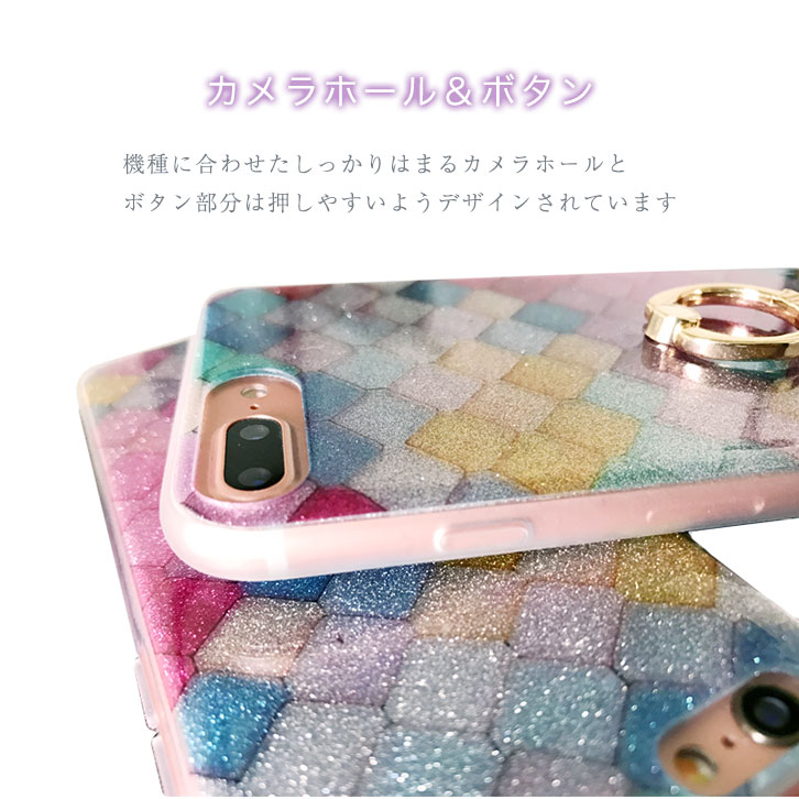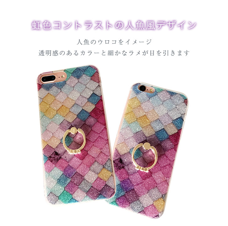 iPhoneケース アイフォン ケース カバー iPhoneカバー 携帯 iPhone 人魚風 人魚のウロコ風 ラメ キラキラ 虹色コントラスト リング付き 指輪風リング かわいい オシャレ 映える TPU