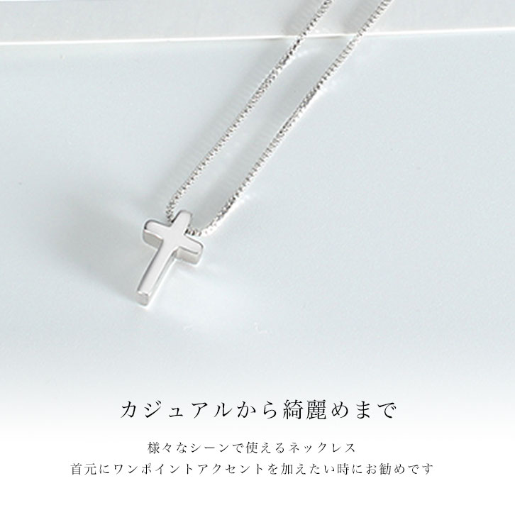 【サイズ】チェーン全長約40センチ アジャスター約4センチ/トップ1センチ シンプルながらも上品さ漂う 大人可愛いシルバークロスネックレスです♪ カジュアル、フォーマル、オフィスと場面を選ばずに お使い頂くことができます♪ コーディネートにさりげなくワンポイントとしていかがでしょうか♪ お誕生日や、記念日等イベント事でのプレゼントや 自分へのご褒美ジュエリーとしてもオススメです☆