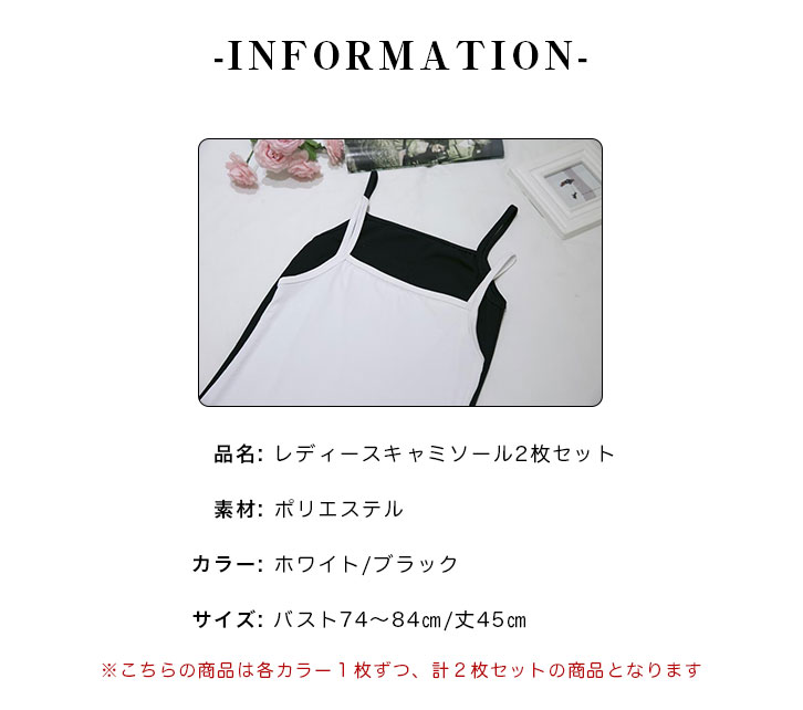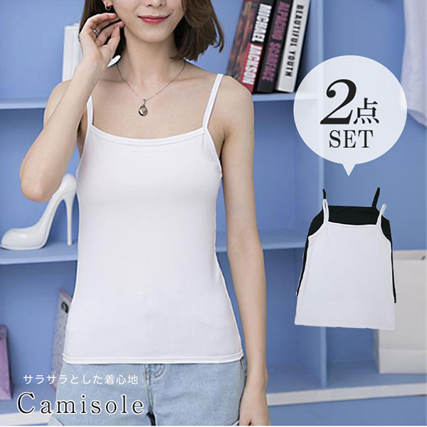キャミソール インナー 下着 2点セット キャミ ホワイト ブラック 重ね着 着心地抜群 オールシーズン使える シンプル 無地 インナーシャツ 下着透け防止 合わせやすい 肌触り抜群