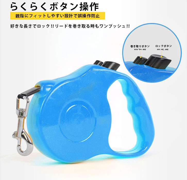 ワンタッチで片手操作、リードの伸びる、ストップ、ロックが片手で操作可能。