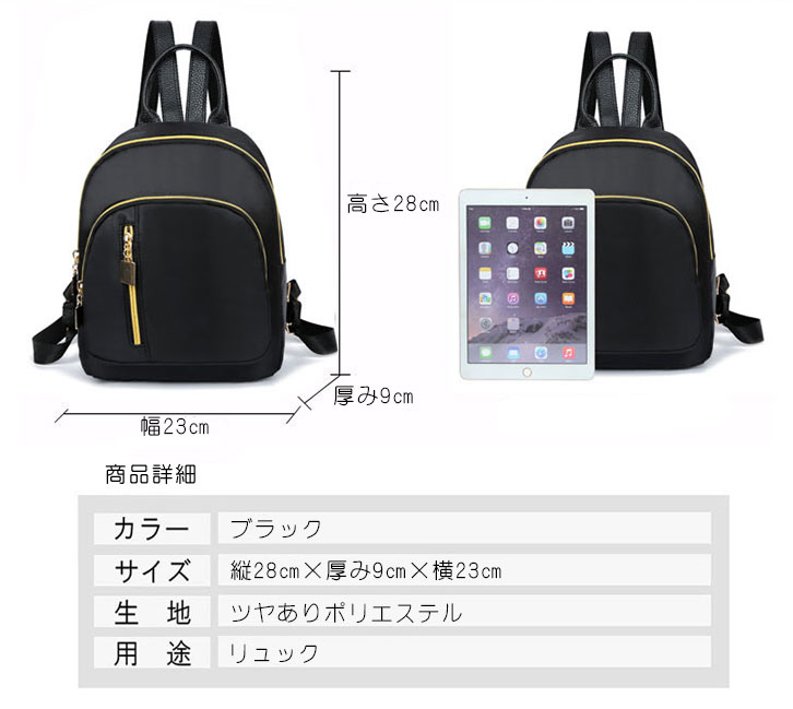 リュック バックパック リュックサック レディース 大人 おしゃれ かっこいい シンプル きれいめ ブラック 黒 小さいながら大容量 機能的 通学 通勤 かわいい デイパック 無地 高校生 小さい ジッパーポケット