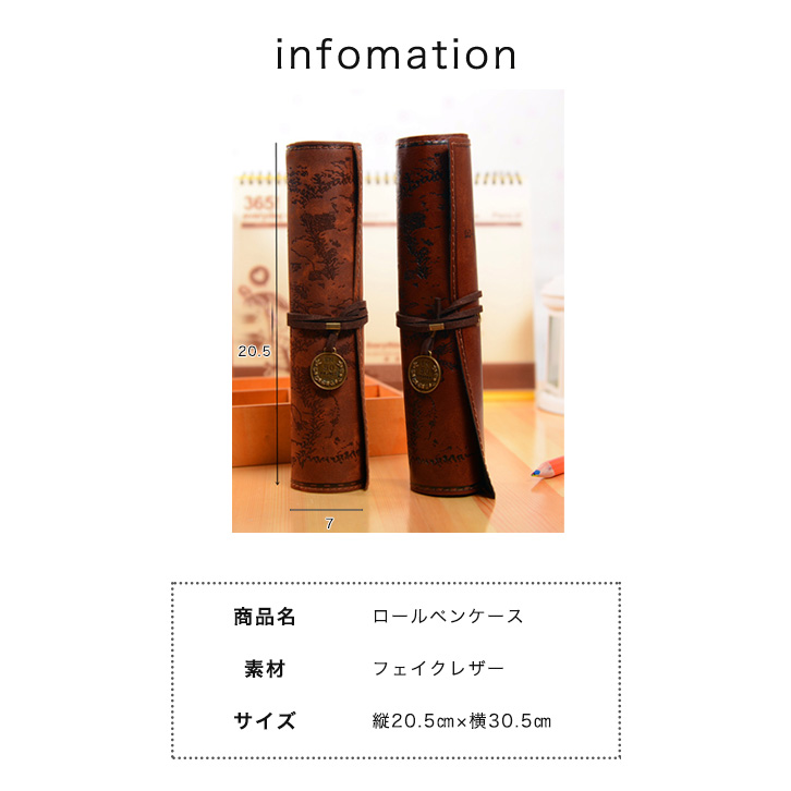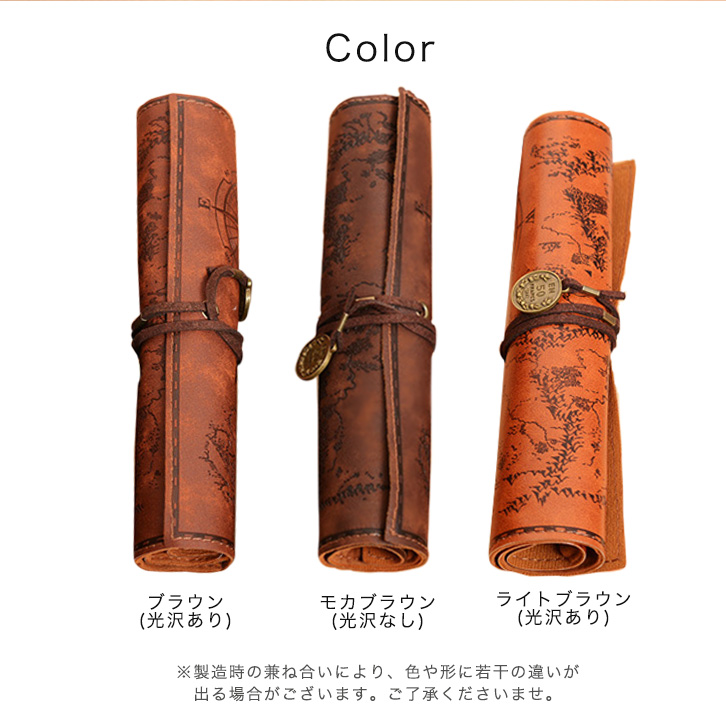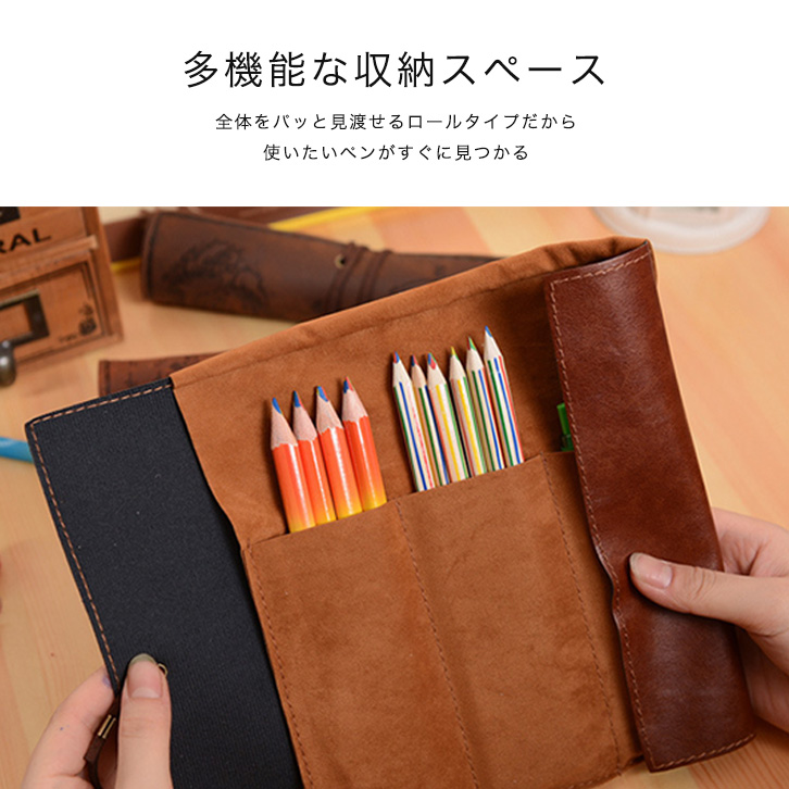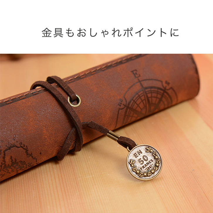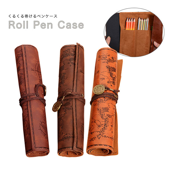 ペンケース ロールペンケース 巻き 巻物風 アンティーク風 オシャレ ロール カバー付き 傷つき防止 多機能 ロールタイプ オシャレ フェイクレザー 高級感 レトロ 宝の地図風 巻タイプ