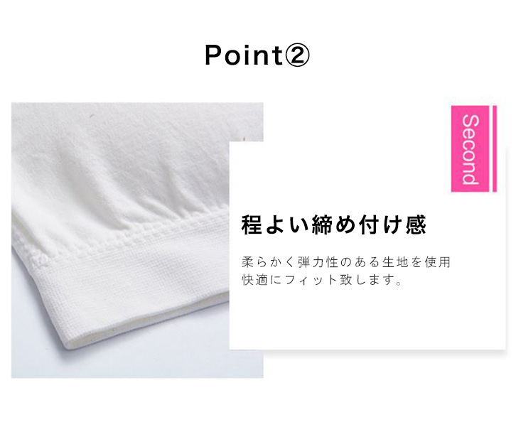 肩ひもに幅広ゴムを採用!腕の上げ下ろしの動作にもストレスが少ない ノンワイヤー&ボーンレスで締め付けない