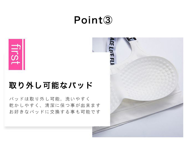 取り外しできる胸パットは、左右一体型で、洗濯しても寄りません