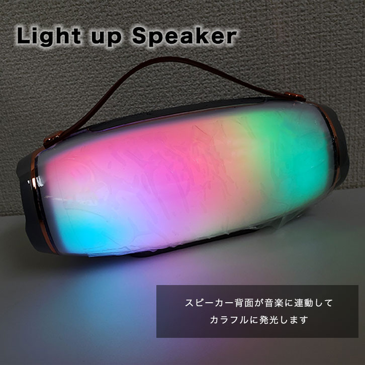 ワイヤレススピーカー Bluetoothスピーカー ワイヤレス Bluetooth カラフルに光る オシャレ 音楽に連動して光る カラー豊富 レッド ブルー グレー ブラック USB ラジオ 通話 音楽 ミュージック再生