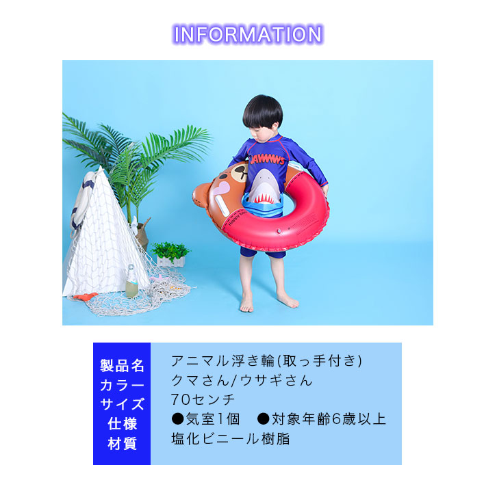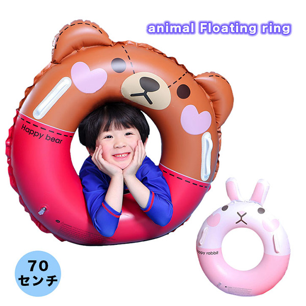 【タイプ】クマさん/ウサギさん 【サイズ】70センチ 【対象年齢】6歳以上 ピンクのハートほっぺたが可愛い♪ アニマル浮き輪です♪♪ 嬉しい取っ手付き☆ 鮮やかな色とキュートな形で思いっきり ウォーターレジャーを楽しめます♪♪