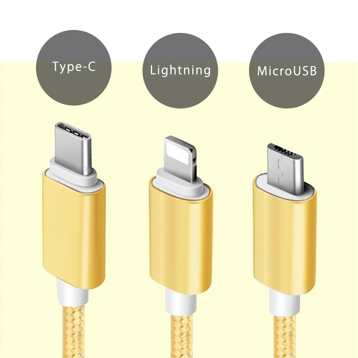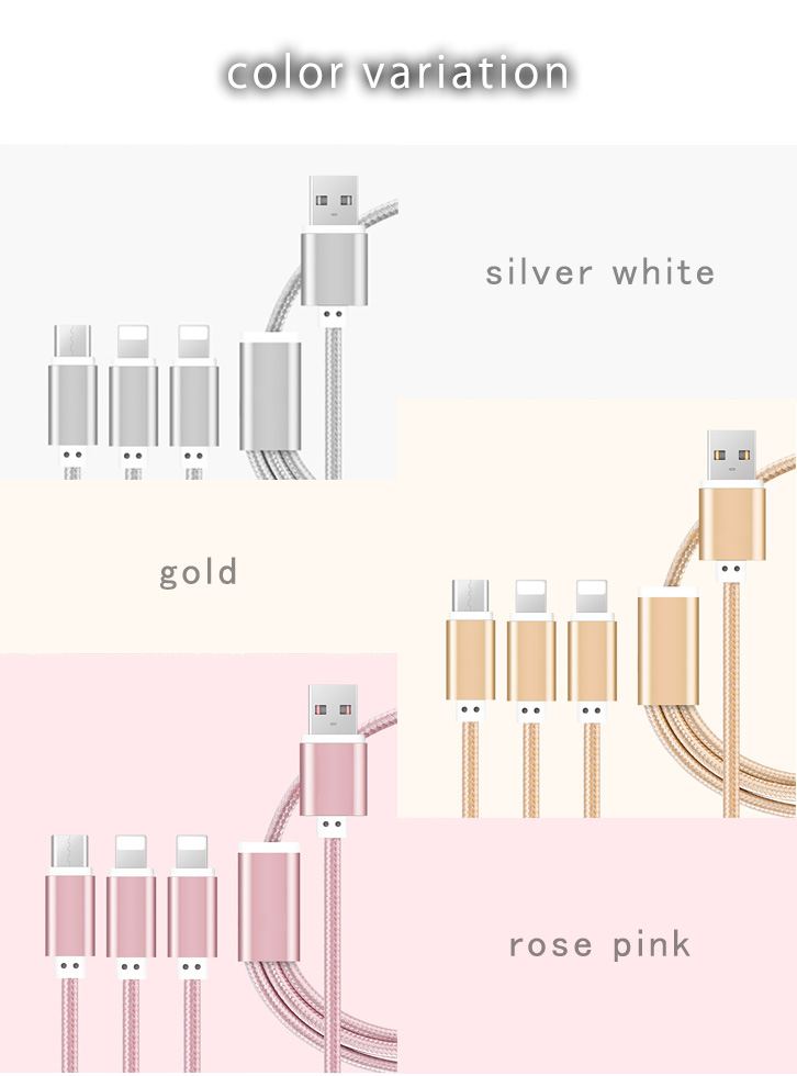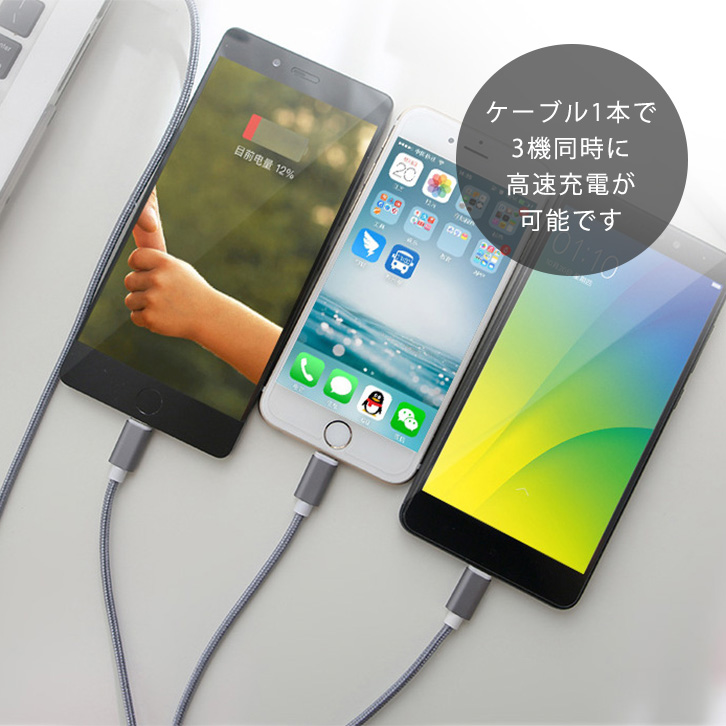 3種同時充電可能充電ケーブル ライトニングケーブル 充電ケーブル USBケーブル 強化ナイロン編み 充電
