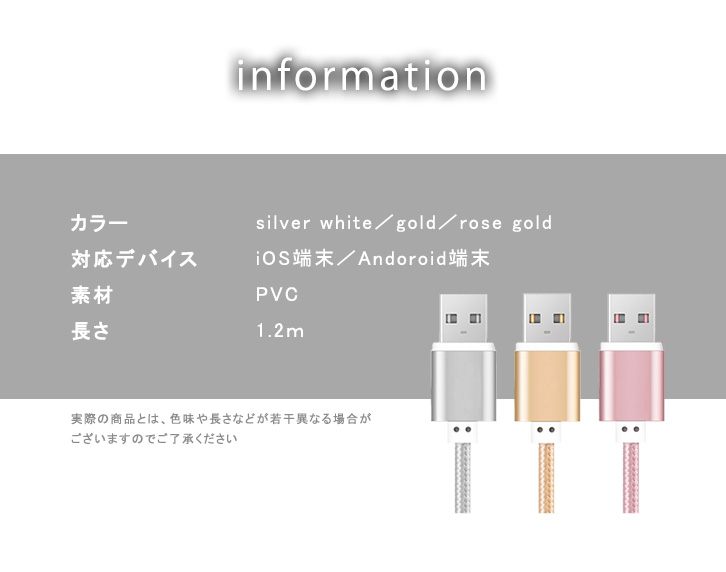 ● 通常の充電ケーブルと比べてももっと早い速度で充電できます!またポリゴン加工を施し、滑りにくく、抜いても挿し込んでもとても便利です。 ● ケーブルの内部は高純度線芯を使用、安全性能が高く、良い導電性を持ち、断線・短路の心配はないです。