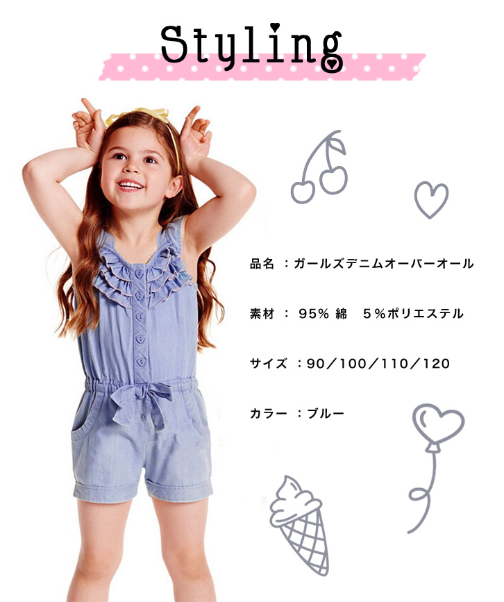 【カラー】ブルー 【サイズ】90/100/110/120 【素材】綿95%/ポリエステル5% お洒落度最高!ヘビロテ間違い無しの可愛さ。 ショートパンツ型のオーバーオールです。 これからの季節にピッタリで、Tシャツなどで着まわし自由な一品です♪ 【問い合わせ商品コード】 aqua-a-ka-009