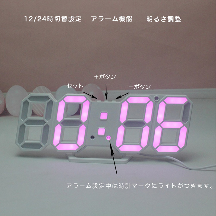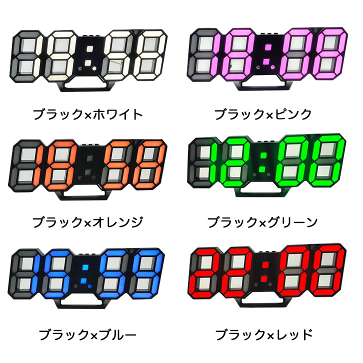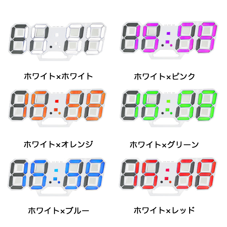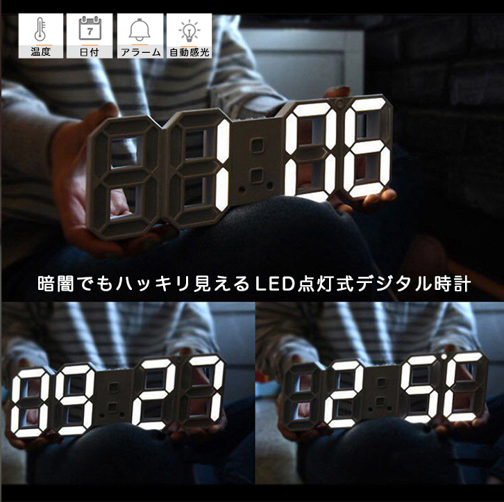デジタル時計 3Dデジタル時計 時計 置き時計 明るさ調節可能 明るさ3段階調節 LED点灯式 明るい 暗闇でもハッキリ見える かっこいい かわいい スタイリッシュ インテリア置き時計 全12タイプ