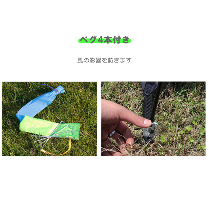 【付属品】ポール2本/ペグ4本/天窓クロス/収納袋(カラーランダム)