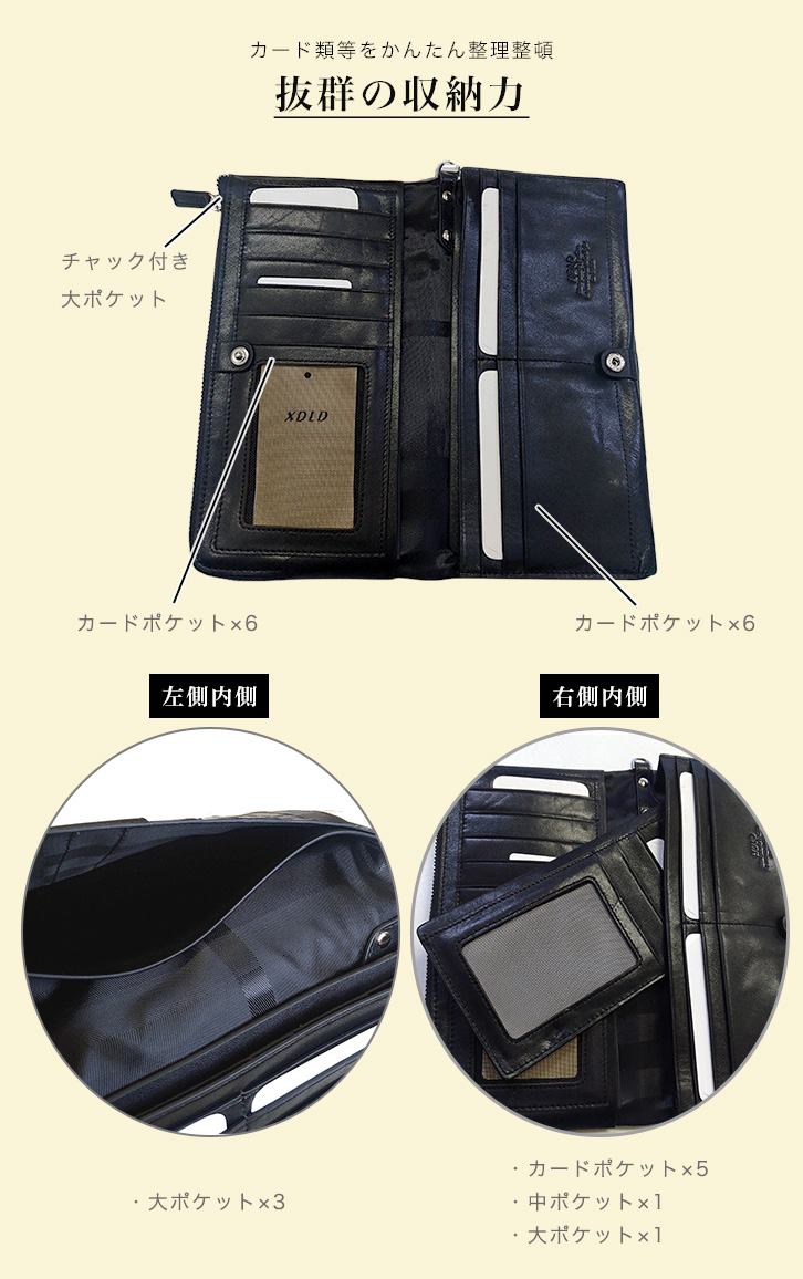 【仕様】ホック開閉/L字ファスナー開閉小銭入れ/背面ファスナーポケット/札入れ/大ポケット×2/カードポケット×12