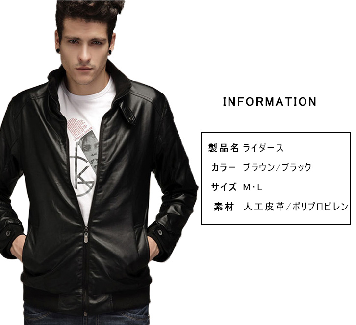 【カラー】ブラック/ブラウン 【サイズ】M/L 【素材】人工皮革/ポリプロピレン シンプルながらオシャレで合わせやすい メンズライダースジャケットです♪♪ デニム等の様々なボトムスにも合わせやすく◎ またリブ袖になっているので 風も通しにくく防寒にも優れています☆ ムレにくく着心地も抜群なので 寒い季節に重宝間違いなしのアイテム♪ 【問い合わせ商品コード】 aqua-ko-e-024