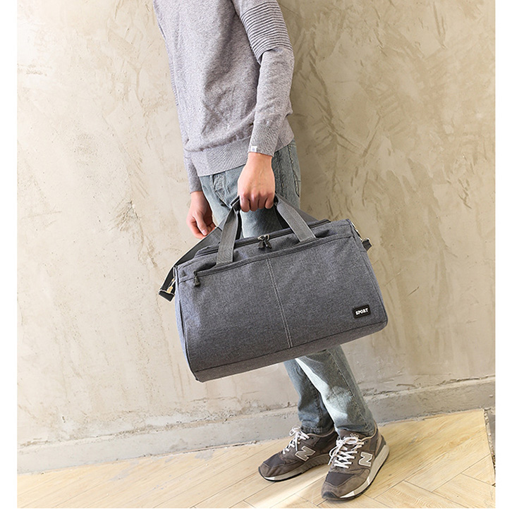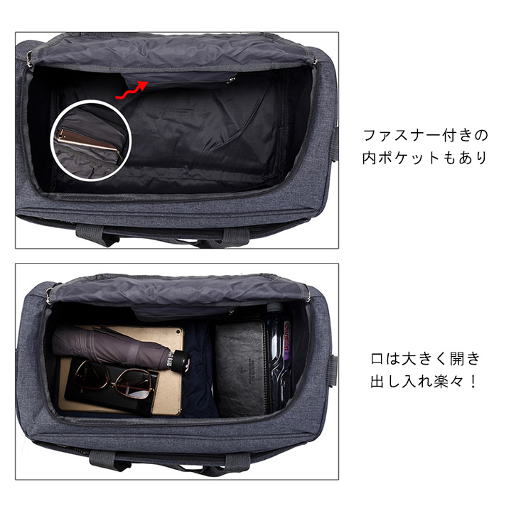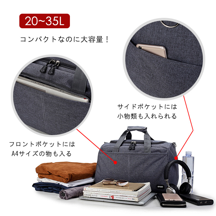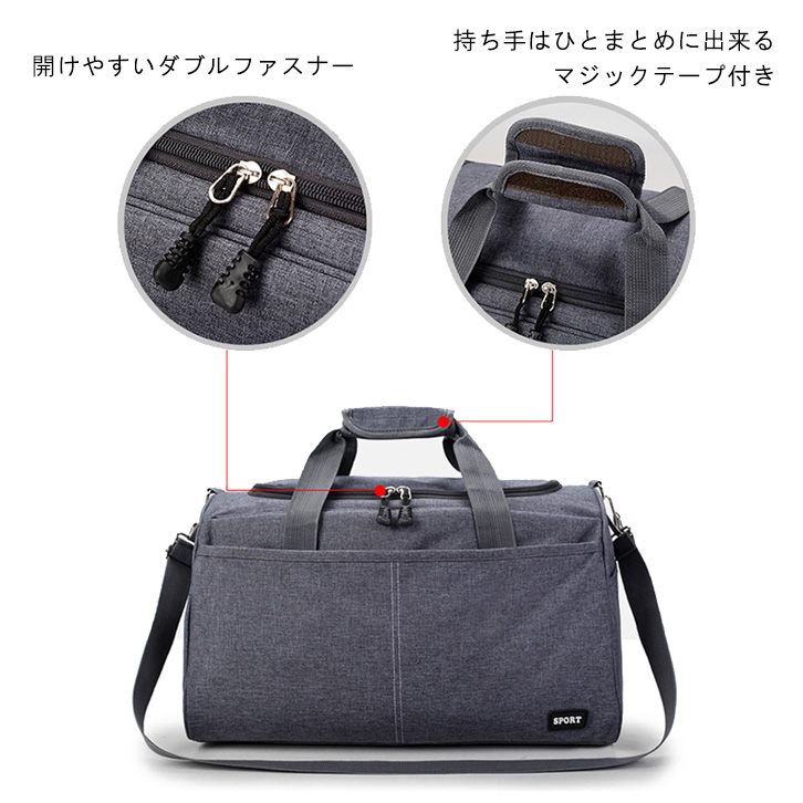 【Lサイズ グレー】旅行バッグ トラベルバッグ 2wayバッグ ハンドバッグ ショルダーバッグ ファスナータイプ コンパクト 大容量 フロントポケットあり サイドポケットあり 内ポケットあり 開閉口広め 便利 グレー Lサイズ